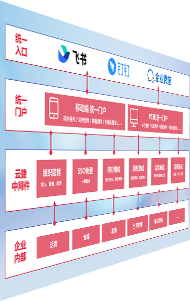 对协作平台提供支持服务,,,,支持企业应用与协作平台对接,,包含组织同步、、、、消息集成、、、、待办集成等。。。支持目前主流的协作平台:钉钉、、、、企微和飞书。。。